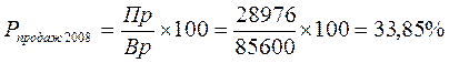 Доля прибыли в выручке составляет в 2008 году 33,85%, а в 2009 – 35,38%, что положительно характеризует деятельность предприятия, это довольно высокий показатель.