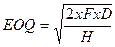 · каков должен быть оптимальный объем заказываемой продукции. Ответы на все эти вопросы даются в теории управления производственными запасами. В частности, показано, что при некоторых ограничениях и предпосылках можно рассчитать размер оптимальной партии заказа (EOQ); соответствующая формула имеет вид: