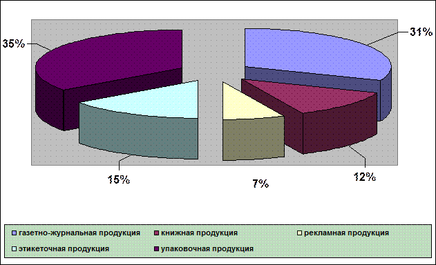 На рисунке №1 показано соотношение сегмента на рынке бумажных полиграфических материалов.