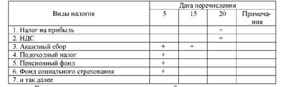 В связи с многообразием налогов, которые уплачивают предприятия, целесообразно составлять налоговый календарь, в котором указывается, когда и какие налоги должно уплатить предприятие.