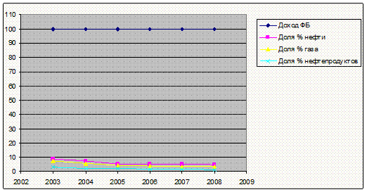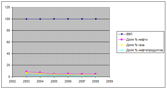 Динамика экспорта топливной продукции РФ в 2003-2008*г.г. (с учетом ВВП)
