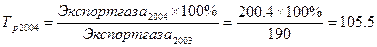 По данным Минпромэнерго экспорт газа в 2005 г. составил 207.3 млрд куб. м. Продолжается тенденция опережения темпов роста экспорта газа над темпами роста добычи газа. Удельный вес экспорта в общем объёме добычи газа уменьшился и составил 5.84% в 2004 году по сравнению в 2003 7.35%, в 2005 4.23%, в 2006 3.94% в 2007-2008 планируется 3.59% и 3.37%.