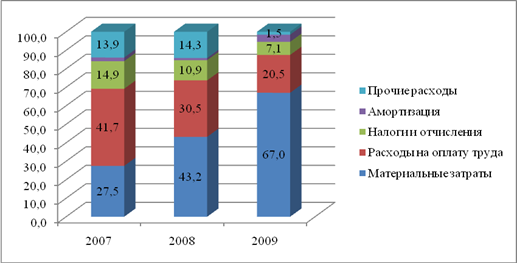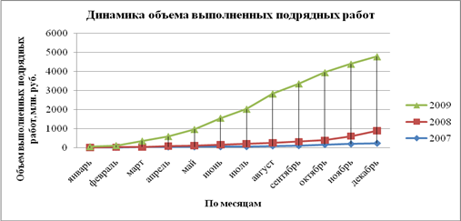 Рисунок 3 – Динамика объема выполненных подрядных работ за 2007 –2009 гг.