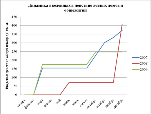 Рисунок 4 – Динамика введенных в действие жилых домов и общежитий за 2007 – 2009 гг