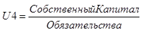 | Коэффициент соотношения собственных и привлеченных средств, или коэффициент финансирования, (U4) | |