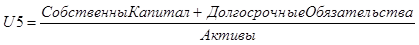| Коэффициент финансовой устойчивости, или долгосрочной финансовой независимости, (U5) | |