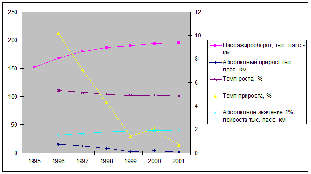 | Абсолютное значение 1% прироста тыс. пасс.-км | 1,524 | 1,679 | 1,798 | 1,875 | 1,902 | 1,941 | |