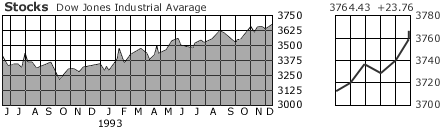 | DJIA | 3764.43 | +23.76 | +0.64 | 3764.43 | 3241.95 | +472.23 | +14.34 | +463.32 | +14.04 |