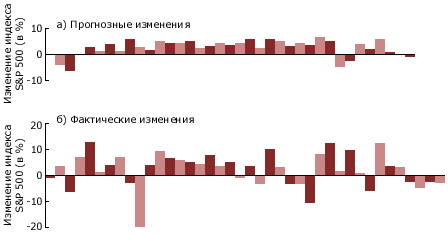 Наряду с другими моментами, фундаментальные аналитики делают прогнозы объема внутреннего валового продукта, объема продаж и уровня доходов в ряде отраслей, а также объема продаж и уровня доходов огромного числа фирм. В конечном счете данные прогнозы превращаются в оценки ожидаемой доходности определенных акций и, возможно, отдельных отраслей и даже фондового рынка в целом. В одних случаях это очевидно. Например, если оценку величины доходов фирмы в расчете на одну акцию для следующего года умножить на прогнозируемое соотношение «цена — доход», то можно оценить ожидаемую цену акции фирмы в следующем году, что в свою очередь позволяет спрогнозировать ожидаемую доходность. В других случаях взаимосвязь носит косвенный характер. Например, акции, для которых прогнозируется доходность, превышающая оценки остальных инвесторов, могут быть включены в «одобренный» список.