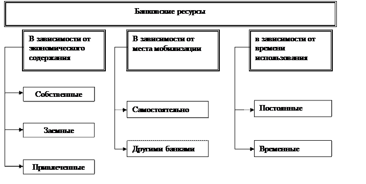 Ресурсы коммерческого банка — это его собственный капитал и привлеченные на возвратной основе денежные средства юридических и физических лиц, сформированные банком в результате проведения пассивных операций, которые в совокупности используются им для осуществления активных операций.