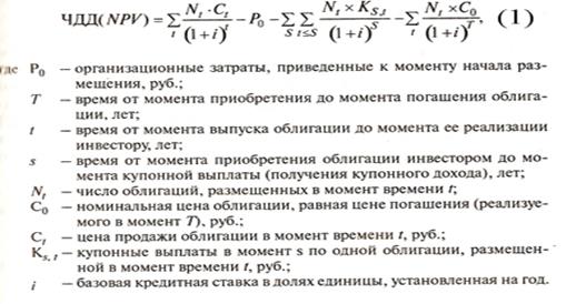 Положительность ЧДД в первом (формула 1) и во втором случае (формула 2) означает, что эмиссия ценных бумаг выгоднее по сравнению с получением кредита по ставке i. При этом предпочтение отдается тому варианту эмиссии, при котором значение ЧДД выше. Ставка i, которая обеспечивает равенство ЧДД нулю, является ВНД финансового проекта и может применяться для выбора лучшего варианта, однако она рекомендуется только при однократном размещении облигаций.