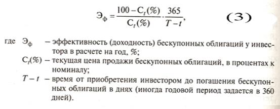 Оценка доходности (эффективности) у инвестора по бескупонным облигациям проводится по формуле простых процентов на текущую дату: