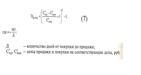 Если инвестор придерживается тактики продажи облигаций в наиболее выгодный момент еще до их погашения, то их доходность в расчете на год определяется по следующей формуле: