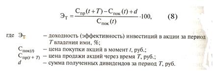 Привлекательность акций, как и любых других инвестиций, определяется их доходностью и надежностью. Доходность акций для инвестора без учета влияния фактора времени (без дисконтирования) за заданный период можно рассчитать по предлагаемой формуле
