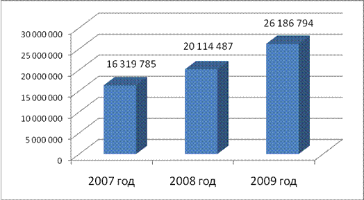 Размер задолженности по налогу на имущество организации в 2007, 2008, 2009 гг., изменение задолженности и темпы прироста по годам представлены в таблице 3.