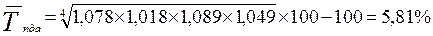 – среднегодовой темп роста, %; n – количество лет;