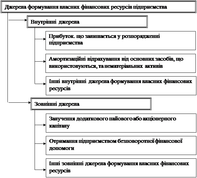 Тобто, джерела формування власних фінансових ресурсів поділяються на внутрішні і зовнішні.