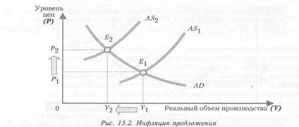 Інфляцію пропозиції викликають ті причини, які сприяли зміщенню кривої сукупної пропозиції вліво.