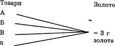У зв'язку з цим поступово майже скрізь, де людство дійшло в своєму розвитку до використання в обміні товару-еквівалента, ця роль почала закріплюватися за металом — бронзою, залізом, а потім сріблом і золотом. Так з'являється грошова форма вираження вартості. Вона має такий вигляд: