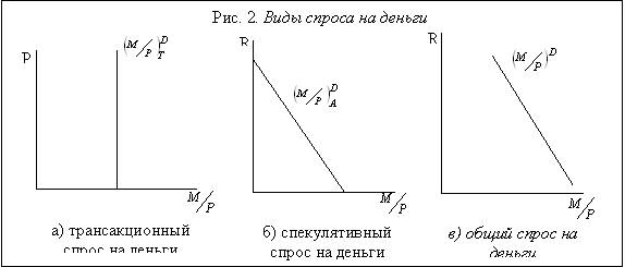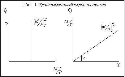 Виды спроса на деньги обусловлены двумя основными функциями денег: 1) функции средства обращения 2) функции запаса ценности. Первая функция обусловливает первый вид спроса на деньги – трансакционный. Поскольку деньги являются средством обращения, т.е. выступают посредником в обмене, они необходимы людям для покупки товаров и услуг, для совершения сделок.