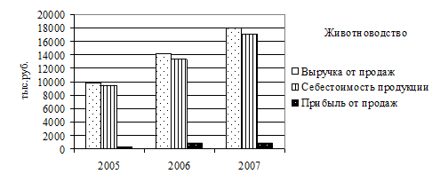 Оценка же финансовых результатов деятельности СПК «Луч» показала, что в 2006 г. объем продаж продукции растениеводства хуже, чем в 2007 г., при этом себестоимость в 2005 и 2006 гг. выше, чем полученная выручка, в следствии чего, растениеводство было убыточным для СПК «Луч» в 2005 и 2006 гг. В 2007 г. ситуация изменилась и предприятие получило прибыль от продаж, что вызвано в первую очередь улучшением технологического процесса производства. Животноводство же за все три года приносило прибыль от продаж, при этом объемы финансовых результатов постоянно возрастали, что вызвано постоянным повышением технического и технологического процесса производства.