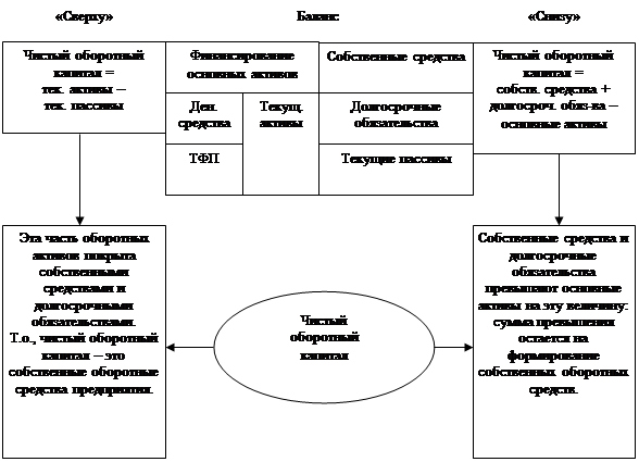 Чистый оборотный капитал можно подсчитать по балансу двумя способами: «снизу» и «сверху» (рисунок 1.3).