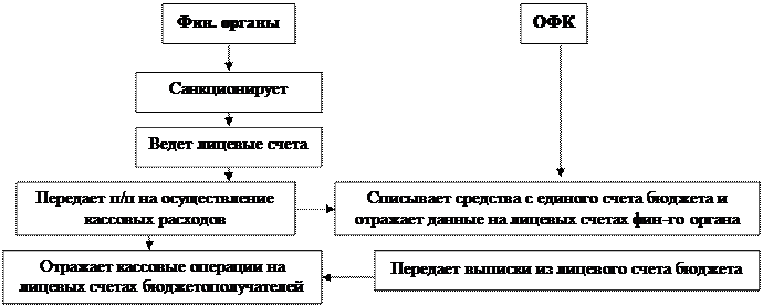 Принцип исполнения бюджета через органы Федерального Казначейства – означает, что регистрация поступлений, регулирование объемов и сроков принятия бюджетных обязательств, совершение разрешительной подписи на право осуществления расхода в рамках выделенных лимитов бюджетных обязательств, осуществление платежей от имени бюджетополучателей возлагается на отделы Федерального Казначейства (ОФК).