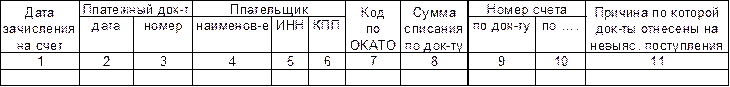 Суммы поступлений, отнесенные в текущем операционном дне к разряду невыясненных, а так же результаты выяснения их принадлежности отражаются в ведомости учета невыясненных поступлений на основании расчетных документов, прилагаемых к выписке, а так же ………. администраторов поступлений