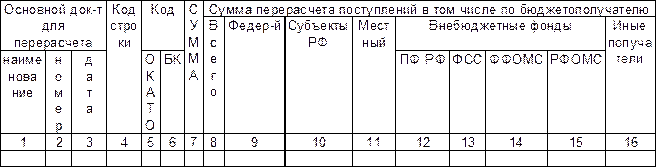 Сумма перерасчетов между бюджетами за текущий операционный день, зачетов излишне уплаченных (взысканных) налогов, сборов и иных платежей, результаты выяснения администраторами платежей вида и принадлежности невыясненных поступлений, отражаются в ведомости учета перерасчета поступлений между бюджетами.