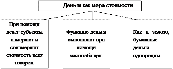 Деньги выполняют функцию меры стоимости, т.е. служат для измерения и сравнения стоимостей различных товаров и услуг. Мера стоимости является основной функцией денег. Все разновидности денег, действующие в национальной экономике в данный момент времени, предназначены для выражения стоимости товаров. В каждой стране установлена собственная денежная единица, которая является мерой стоимости всех товаров и услуг, присутствующих на рынке. В России мерой стоимости, например, является рубль, в США — доллар, в Японии — иена.