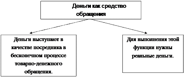 Как общественное свойство товара стоимость можно выявить только путём приравнивания одного товара к другому в процессе обмена. Существует эквивалентная форма выражения стоимости (товар Б служит материалом для выражения стоимости товара А). Деньги – это особый товар, выполняющий роль всеобщего эквивалента. Они выражают затраты общественного труда, воплощённого в товаре, и на этой основе обеспечивают их обмениваемость. Деньги являются абсолютно ликвидным средством обмена, т.е. товаром, имеющим наибольшую способность к сбыту. «В качестве меры стоимости деньги выступают измерительным инструментом для сделок. Стоимость товара, выраженная в деньгах, есть его цена». Современные представления о сущности денег можно обобщить следующим образом: деньги, будучи общественным явлением, представляют собой товар, который функционирует в качестве средства обращения, счётной единицы и средства сохранения стоимости. Функцию средства обращения как правило выполняет национальная денежная единица: рубль, доллар, евро и пр. Как средство обращения деньги постоянно переходят из рук в руки, являясь лишь мимолётным посредником при обмене товаров, что делает возможным замену полноценных денег неполноценными бумажными знаками. Оплата товара наличными деньгами в момент покупки не всегда возможна. В этих случаях покупатель приобретает товар с отсрочкой платежа, выдавая продавцу долговое обязательство, в котором фиксируется сумма долга и срок его погашения. Продавец становится кредитором, а покупатель – заемщиком. В случае, если потребительная стоимость товара или услуги поступают к покупателю раньше, чем стоимость к продавцу, деньги выполняют функцию средств платежа. В современных условиях произошло сращивание функций денег как средства платежа и средства обращения, экономисты часто называют эту функцию денег средством обмена.