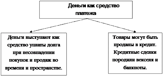Функция средства платежа возникает, когда товары и услуги продаются в кредит, т.е. с отсрочкой платежа. Регулярное систематическое производство для рынка генерирует в обществе устойчивые хозяйственные связи, основанные на разделении труда и специализации товаропроизводителей. В денежной сфере создаются условия для распространения кредитных отношений в качестве устойчивого экономического явления. Продажа товаров с условием отсрочки платежа становится необходимым элементом хозяйственной жизни и составной частью производственного процесса. Она применяется при оплате сырья и полуфабрикатов, готовой продукции, при оплате труда и во многих других операциях. Регулярным явлением становится и рыночная торговля в кредит. Возникает необходимость общественной гарантии исполнения платежа, что осуществляется путем соответствующего государственного законодательства.