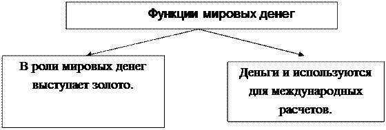 Деньги на мировом рынке выполняют функции общего платежного средства, общего покупательского средства и средства перенесения богатства из одной страны в другую. Итак, мировые деньги — это комплексная функция, повторяет, по сути, все функции, присущие деньгам на внутреннем рынке.