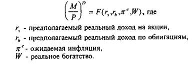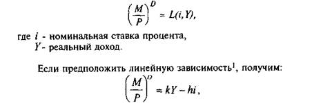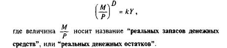 Оставляя в стороне наиболее сложный и противоречивый фактор — скорость обращения денег, по поводу которого отсутствует единство во взглядах среди экономистов, мы можем представить функцию спроса на реальные денежные остатки следующим образом: