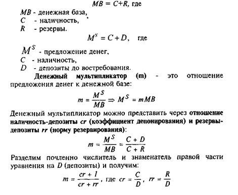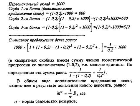 1 Коэффициент — называется банковским мультипликатором, или мультипликатором денежной экспансии.