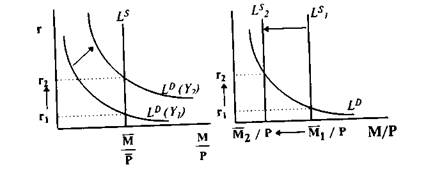 Колебания равновесных значений ставки процента и денежной массы могут быть связаны с изменением экзогенных переменных денежного рынка: уровня дохода, предложения денег. Графически это отражается сдвигом, соответственно, кривых спроса и предложения денег.