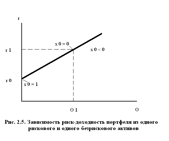 соответствует распределению средств инвестора между портфелем А и безрисковым активом с доходностью