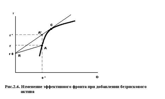 и инвестирование всех средств в портфель В. Существенно, что инвестор в этих случаях выбирает различные по структуре портфели рисковых активов. На практике вместо кривой