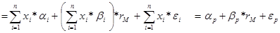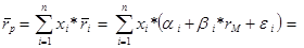 — коэффициент чувствительности изменения доходности ценной бумаги относительно изменения доходности среднерыночного портфеля,