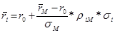 -ой ценной бумаги и доходностью среднерыночного портфеля.