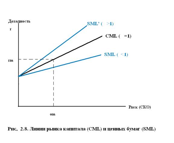 которое называется уравнением линии рынка ценных бумаг (SecurityMarketLine — SML) и с учетом (2.13) может быть переписано с использованием коэффициента