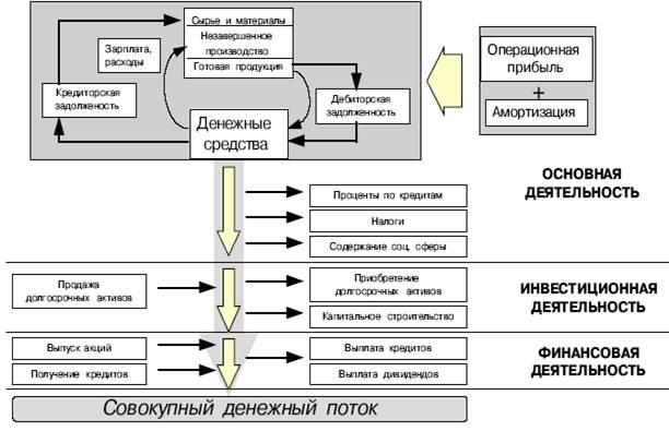 С движения денежных средств начинается и им заканчивается производственно-коммерческий цикл. Деятельность предприятия, направленная на получение прибыли, требует, чтобы денежные средства переводились в различные активы, которые обращаются в дебиторскую задолженность в процессе реализации продукции. Результаты деятельности считаются достигнутыми, когда процесс инкассирования приносит поток денежных средств, на основе которого начинается новый цикл, обеспечивающий получение прибыли.