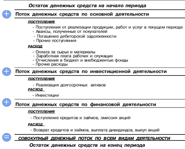 Разница между поступлением денежных средств и их выбытием представляет собой чистый поток денежных средств.