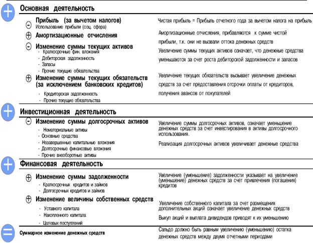 Анализ проводится по трем видам деятельности: основной, инвестиционной и финансовой. При этом используются прямой и косвенный методы анализа.