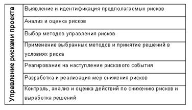 В применении к инвестиционному проектированию реализация концепции приемлемого риска происходит через интеграцию комплекса процедур – оценки рисков проекта и управления проектными рисками.