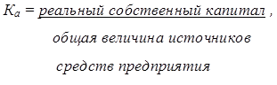 — коэффициент реальной стоимости имущества показывает, что на конец года средства производства в общей стоимости имущества составляют 70%;