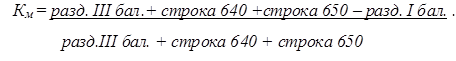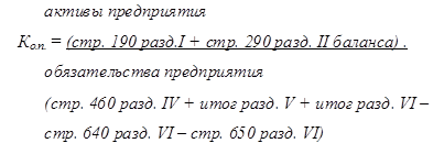 Активы организации состоят из внеоборотных и оборотных активов. Поэтому наиболее общую структуру активов характеризует коэффициент соотношения оборотных и внеоборотных активов, рассчитываемый по формуле