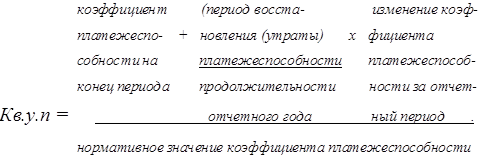 — Коэффициент восстановления меньше 1, следовательно, у предприятия нет реальной возможности восстановить ликвидность баланса в ближайшее время.