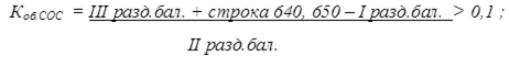 — коэффициент обеспеченности запасов собственными источниками финансирования — это показатель того, в какой мере материальные запасы покрыты собственными источниками и не нуждаются в привлечении заемных средств. На начало года все запасы покрывались за счет заемных источников, на конец года — 89 %.;