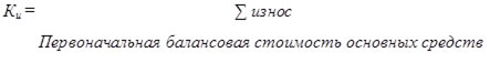 Кг = остаточная стоимость основных средств/первоначальная стоимость основных средств(1.8).